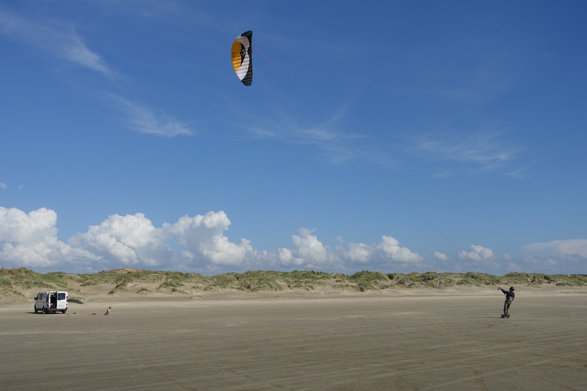 Ondra do Martina hučel už dlouho, ať s ním jede někam lítat. Někam se vlastně rovnalo už docela konkrétnímu místu, resp. státu, a to Dánsku. Minulý rok jim to nevyšlo a letos už to bylo také skoro na spadnutí. Pro ty z vás, které zarazilo slovo lítat: kluci mají takového vcelku adrenalinového a drahého koníčka, kterému se říká kiting. Jedná se v podstatě o využití větru jakýmsi padákem o různých velikostech k vyvíjení vertikálního (někdy i horizontálního) pohybu za pomocí jiných "udělátek", které ten pohyb umožní. Martin tedy vlastní buggynu (buggykiting) a Ondra pak má jakýsi mountainboard (landkiting). Mě pro radost zatím úplně stačí stát a "pouštět" nějaký malý kite jen tak na místě, ale to je prý pro amatéry :)