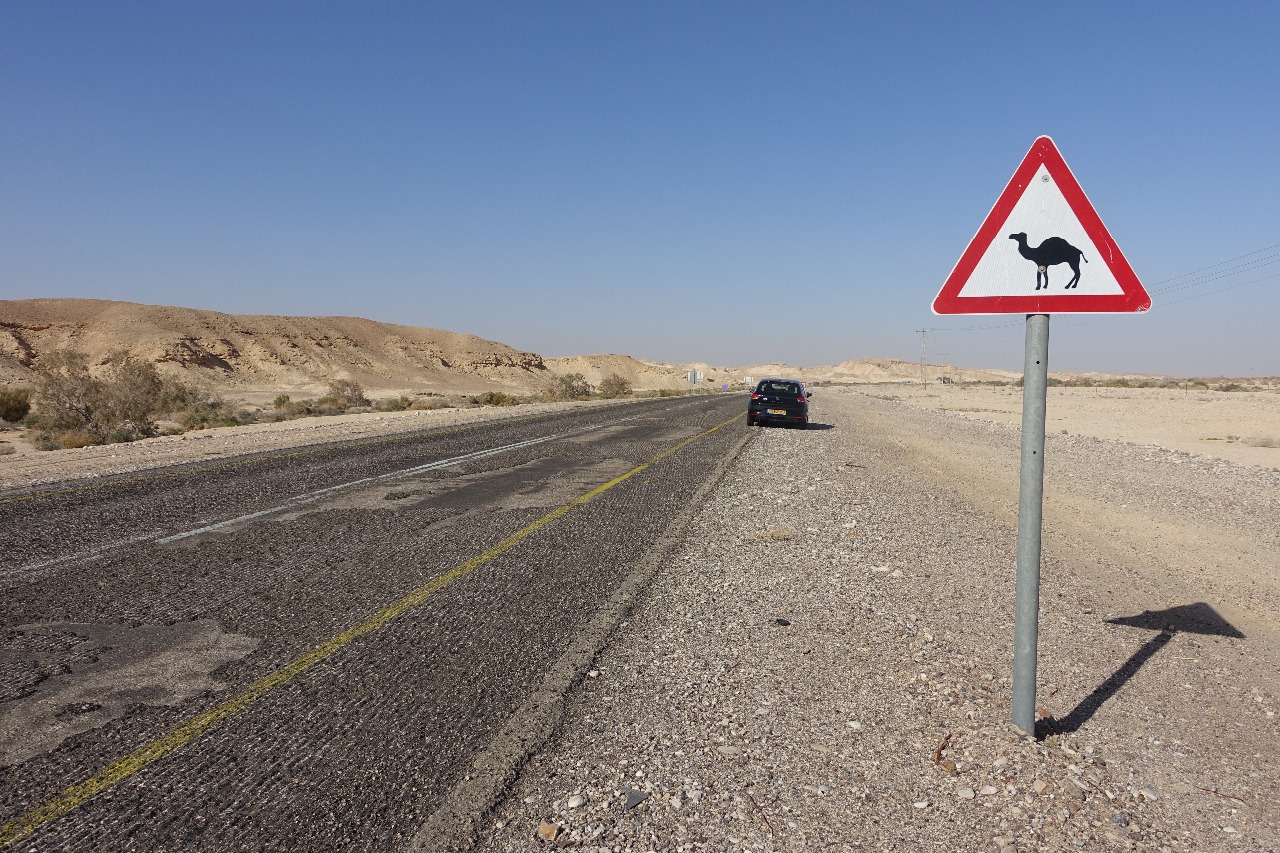 Po cestě pomalu zjišťujeme, že izraelské silnice jsou opravdu v dobrém stavu a že místní moc neřeší předepsanou rychlost, že v Negevské poušti není moc provoz a že máme v autě nainstalovanou jakousi krabičku, která umí pochopit, že auto přejelo krajnici nebo jiný pruh bez blinkru, umí také vypočítat brzdnou dráhu, která nás dělila od auta, která jelo před námi a uměla nás upozornit, že jedeme víc, než je byla povolená rychlost. Pípala nám docela často a trochu nám lezla na nervy...